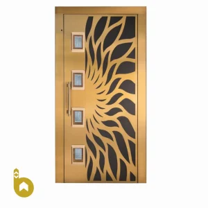 - درب لولایی طبقه آسانسور در طرح استیل طلایی
